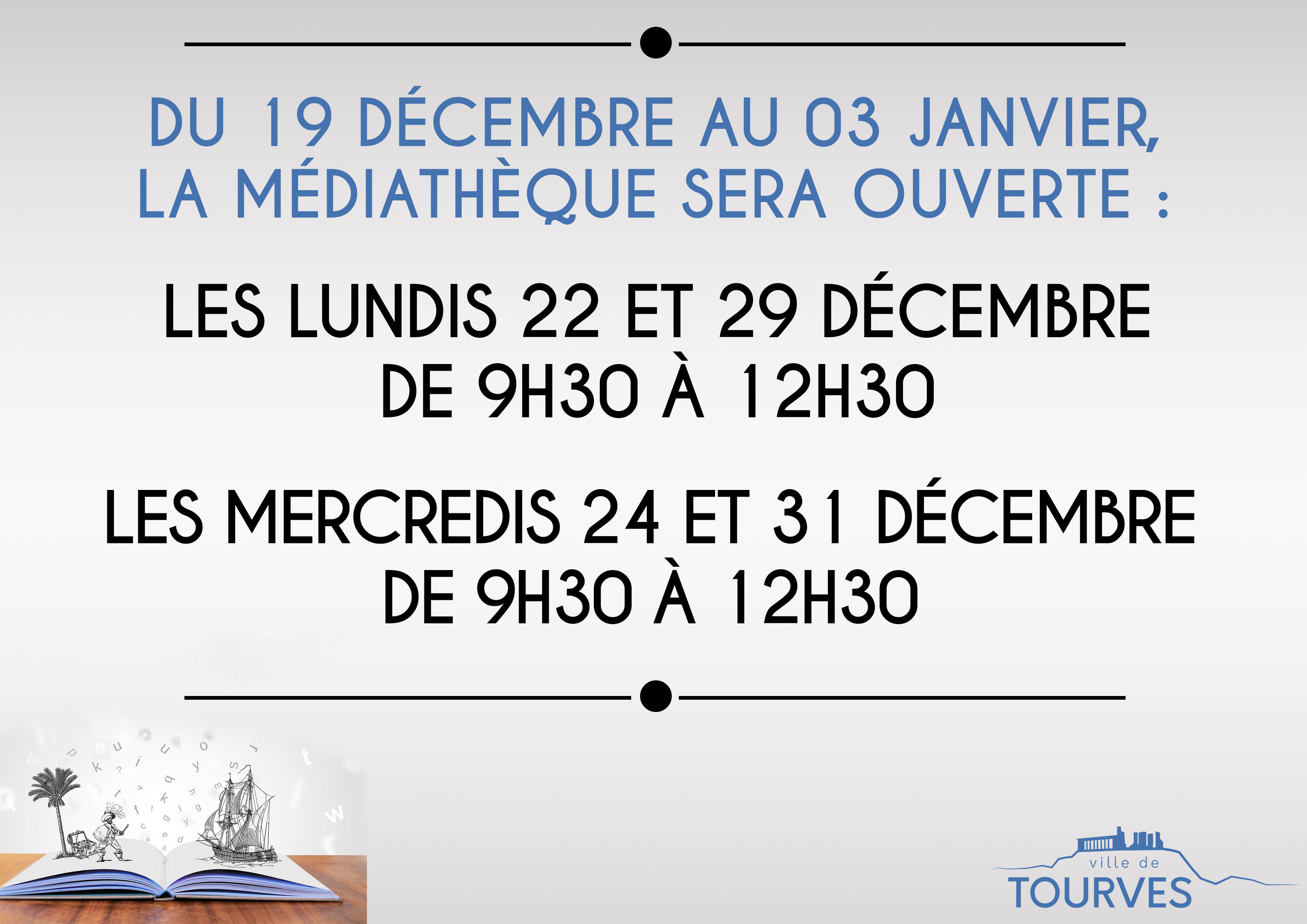 HORAIRES DE LA MÉDIATHÈQUE 📚 DU 19 DÉCEMBRE AU 03 JANVIER