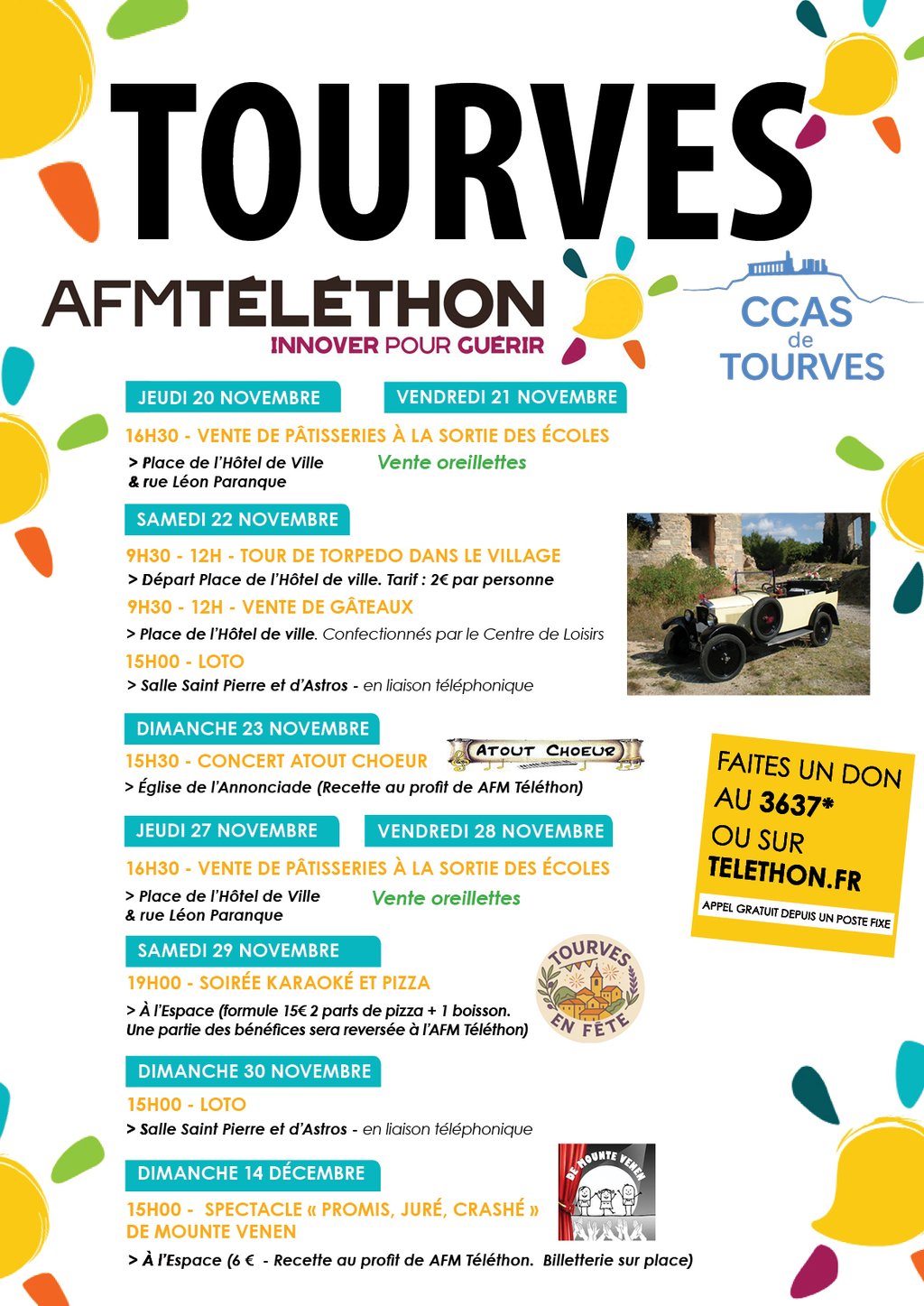 19h - Soirée karaoké et pizza par l'association Tourves en Fête à l'Espace (Formule 15€ les deux parts de pizza + 1 boisson - Une partie des bénéfices sera reversée à l'AFM Téléthon).